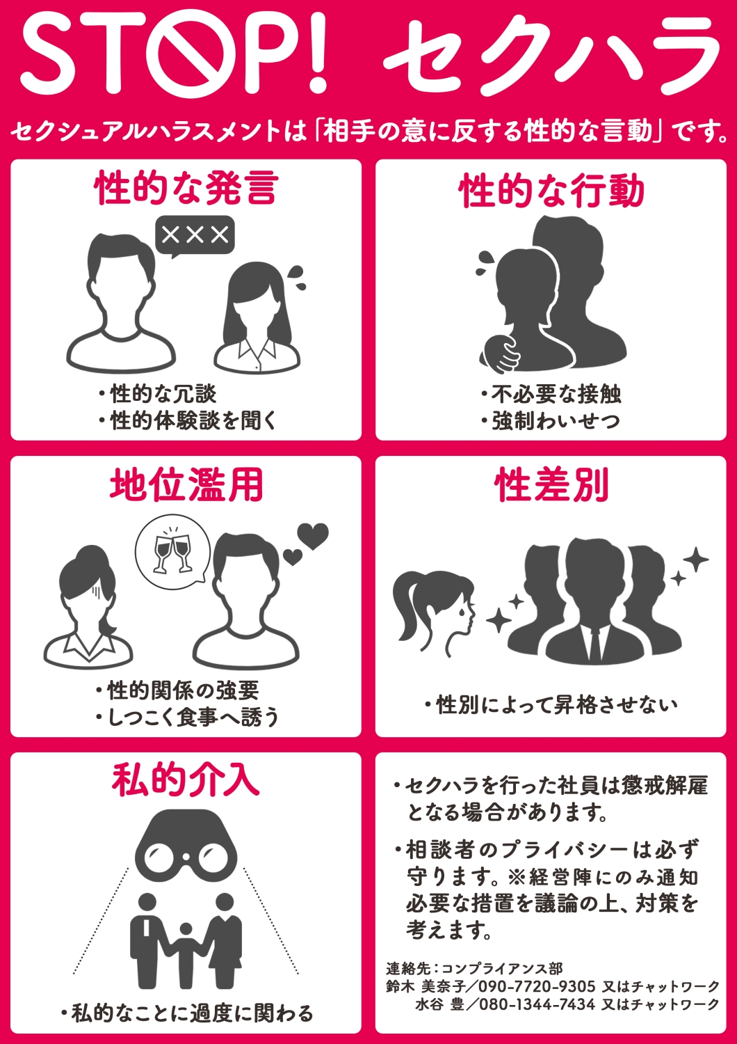 社内掲示用のポスターを幅広いテーマで制作しています。社員の意識統一やモチベーションアップを目的としたブランディング系ポスターから、コンプライアンスや啓発を重視した真面目なトーンのポスター、さらには福利厚生制度を楽しく伝えるポスターまで、バリエーション豊かに展開。