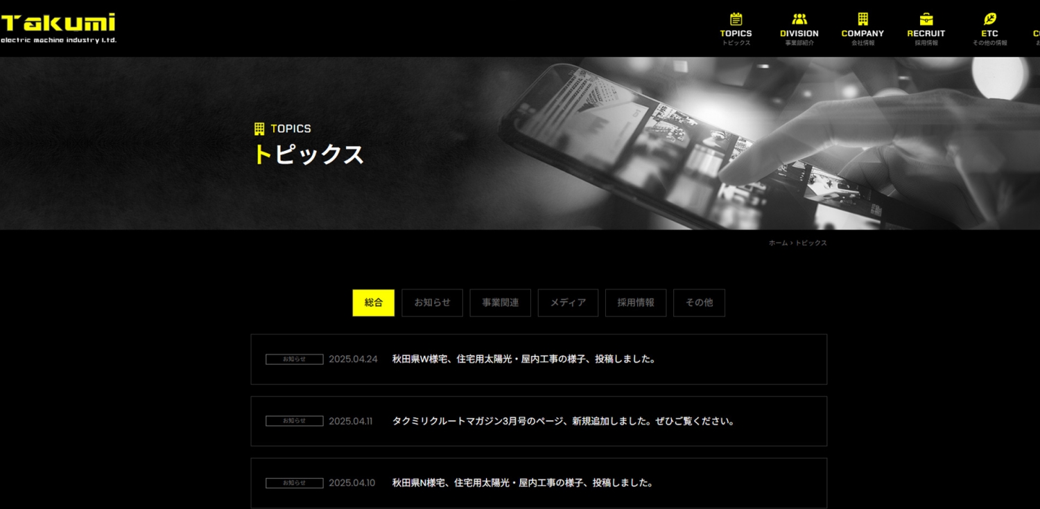 タクミ電機工業様のコーポレートサイトを制作しました。